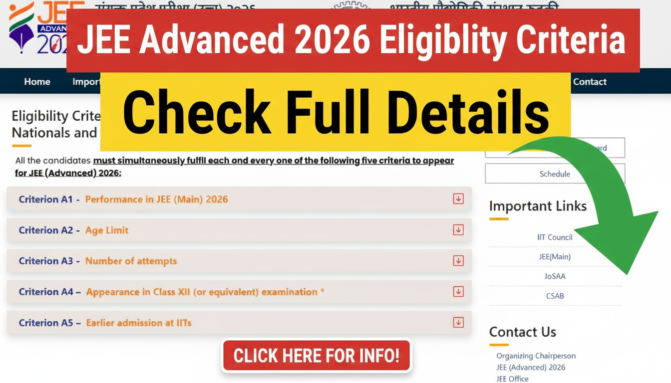 For thousands of engineering aspirants across India, JEE Advanced 2026 represents the final and most important step toward securing admission into the prestigious Indian Institutes of Technology (IITs). While preparing for the exam is crucial, understanding the eligibility criteria is equally important. Every year, many students miss their chance simply because they overlook one eligibility condition. This article explains the JEE Advanced 2026 eligibility criteria in a clear, simple, and human-written manner so that you know exactly where you stand.